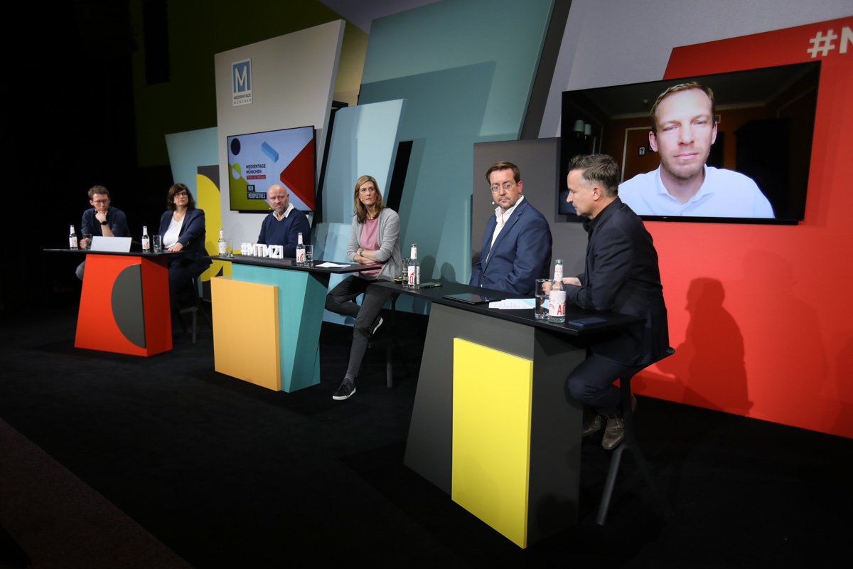 Erstmals haben die MEDIENTAGE MÜNCHEN in diesem Jahr unter dem Titel New Perspectives eine Konferenz angeboten, die zugleich vor Ort und online besucht werden konnte. Während die Veranstaltung 2020 wegen der Corona-Pandemie ausschließlich per Internet stattfand, war in diesem Jahr eine hybride Lösung möglich: Das Publikum konnte entweder vor Ort im Münchener Isarforum dabei sein oder auch sämtliche Veranstaltungen online per Live-Videostream verfolgen. So wurden innerhalb einer Woche insgesamt mehr als 9.000 Besucher:innen erreicht. Das Programm bestand aus mehr als hundert Einzelveranstaltungen mit etwa 400 Referent:innen und Diskussionsteilnehmer:innen aus Medienwirtschaft und -politik, aus Kultur, Wissenschaft und Gesellschaft.
