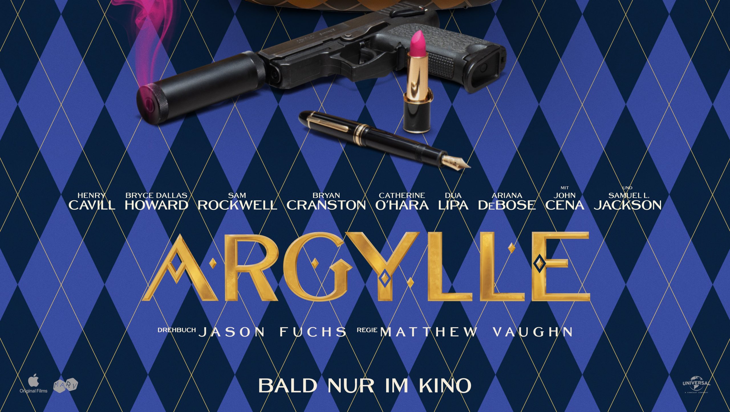 Zum Top-Cast von ARGYLLE gehören neben Howard und Rockwell u. a. Henry Cavill (The Witcher), John Cena (Fast & Furious 10), Oscar®-Preisträgerin Ariana DeBose (West Side Story), Grammy-Preisträgerin und Pop-Superstar Dua Lipa (Barbie), Emmy-Preisträger und Oscar®-Kandidat Bryan Cranston (Breaking Bad), Emmy-Preisträgerin und Comedy-Ikone Catherine O’Hara (Schitt’s Creek), Sofia Boutella (Atomic Blonde) sowie der legendäre Samuel L. Jackson (Pulp Fiction). Die Rolle von Kater Alfie übernimmt Chip, der im echten Leben ein sehr prominentes Frauchen hat: Supermodel Claudia Vaughn (geborene Schiffer).